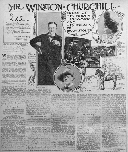 “Winston Churchill ile Röportaj” Bram Stoker’ın kurgu dışı makalelerinden biri. Bu yazı, Stoker’ın 1907’de yaptığı bir dizi röportajın ikincisiydi. İlk kez ABD’de New York’ta The World’ün 5 Ekim 1907 tarihli sayısında yayımlandı. Ertesi gün Evansville Courier’in 6 Ekim 1907 tarihli sayısında yeniden basıldı. İlk olarak İngiltere’de The Daily Chronicle’ın 15 Ocak 1908 tarihli sayısında “Mr. Winston Churchill: Talks of his Hopes, His Work, and his Ideals to Bram Stoker” başlığıyla yayımlandı.