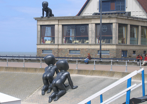 2001 yılından beri kuleyi süsleyen Cerny’nin yaratık bebekleri: İlk kez 1994 yılında Chicago Modern Sanat Müzesi’nde düzenlenen “Beyond Belief” sergisinde seyirci önüne çıkan bebek heykeli, takip eden iki yıl boyunca Amerika’da çeşitli şehirlerde düzenlenen sergileri gezdi. 1997’de Ukranya’da “Kyjev” sergisinde bulundu. 1999’da cam elyafından hazırlanan bir kopya Londra’daki Çek Konsolosluğu’nun binasının ön cephesine yerleştirildi. 350x260cm boyutlarında bir kopyası New York’taki Clocktower Gallery binasının çatısında bulunan heykellere, Belçika’nın Ostend şehrinin deniz kıyısındaki Beafort Heykel Parkı’nda da rastlanabilir. Ayrıca Prag’da Vltava nehri kıyısında bir vaha olan Kampa Park’ta da bebeklerden örnekler bulunmakta.