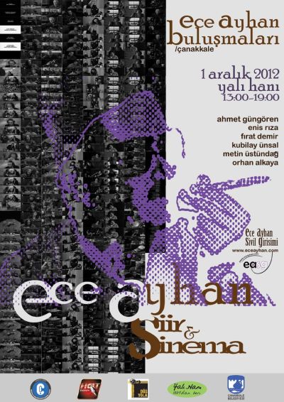 Ece Ayhan Sivil Girişimi hem Ece Ayhan’ın sinemayla ilgili geçmişine/düşündüklerine/yazdıklarına daha yakından bakabilmek, hem de Ece Ayhan okurlarıyla şiir/edebiyat ve sinema arasındaki ilişkiyi, hal ve gidişi tartışabilmek için tüm Ece Ayhan okurlarını 1 Aralık 2012 Cumartesi günü Çanakkale’ye davet ediyor.
