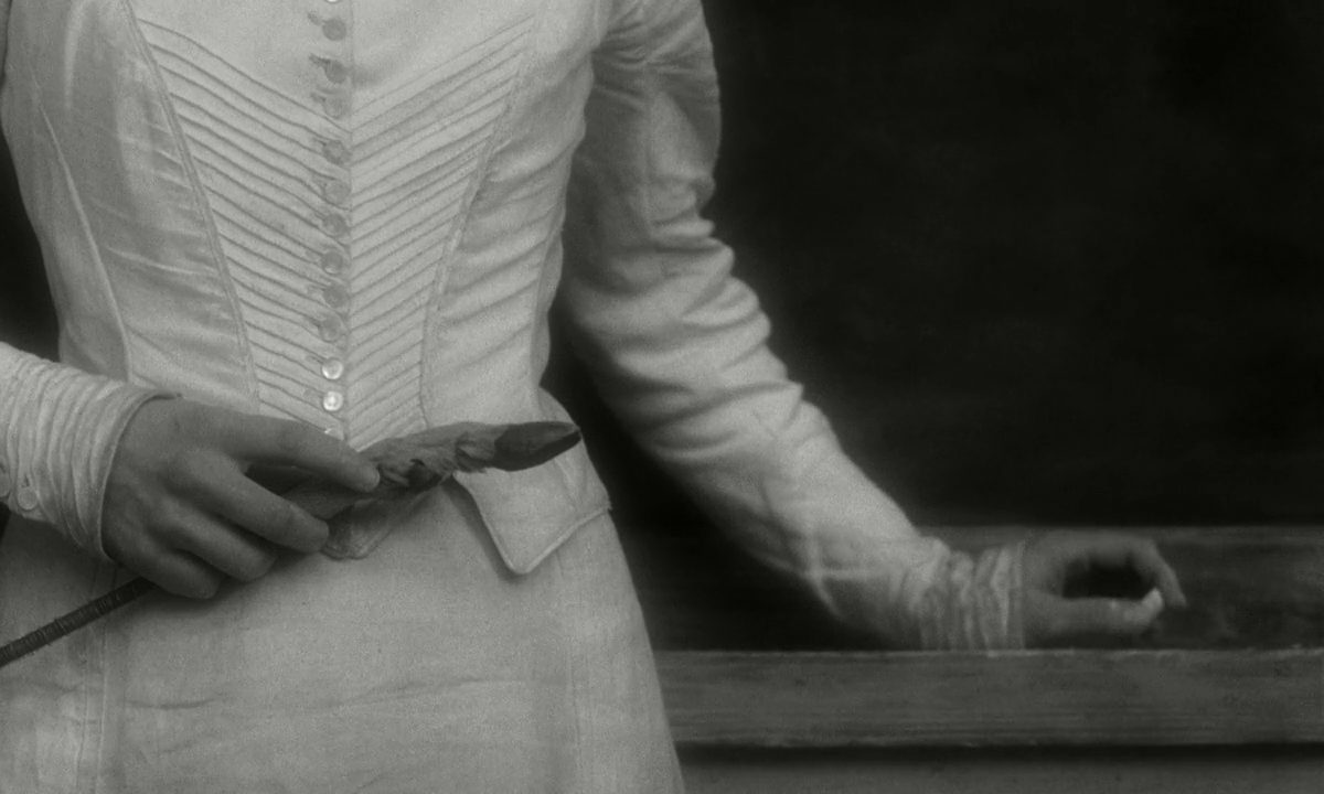 On the screen we see the hilarious fonts of the movie and the eyes of a monkey. We can mention the perpetrators as a woman and a man and hear barely what they talk about.