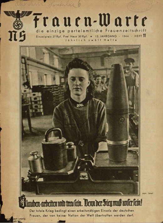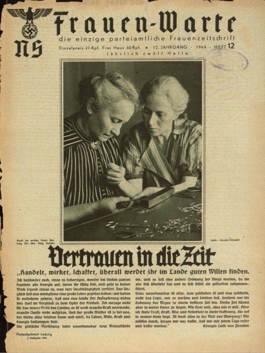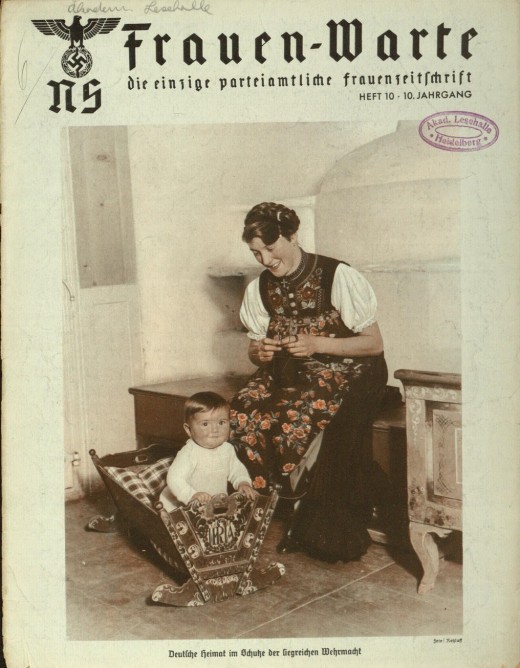 NS-Frauen-Warte, the only women’s magazine published with the approval of the Nazi propaganda ministry, was published in 1941-45 to reflect on the importance of motherhood in society and the value of housewife for the nationalist state and society.