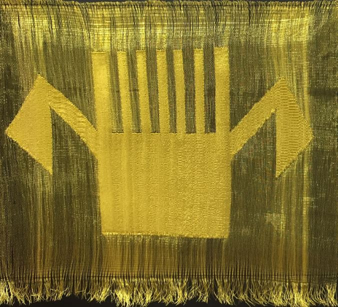 For her new work, Semercioğlu has worked with women from across Turkey, in collaboration with whom she has produced in her signature style items familiar to domestic spaces. A bed stands at the far end of the gallery, a free flowing garment hangs from the ceiling, and the walls are decorated with framed pictures. By working almost exclusively with gold plated filament – a colour closely associated with weddings in Turkish culture – she alludes to this being the surreal marital home of an imagined young woman.