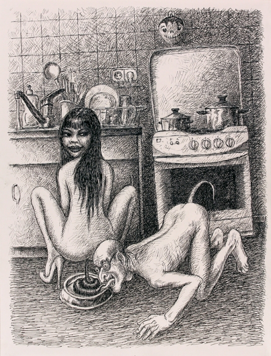 Du hast schon merkwürdige Zeichnungen, besonders deine Frauen mit Penissen sind schwer zu verstehen. Ist das eine persönliche Fantasie oder soll es die Ermächtigung der Frau symbolisieren indem du ihr einen Schwanz anhängst?