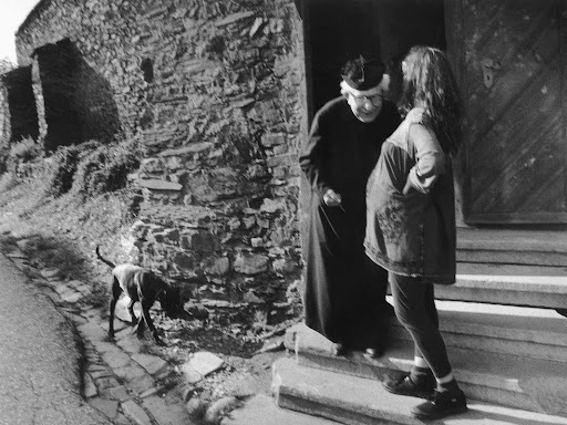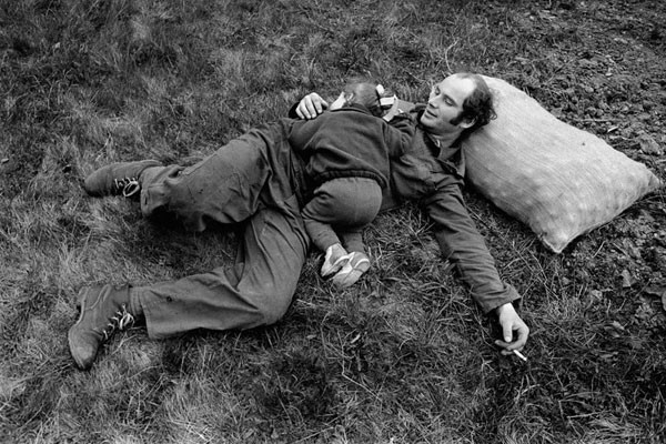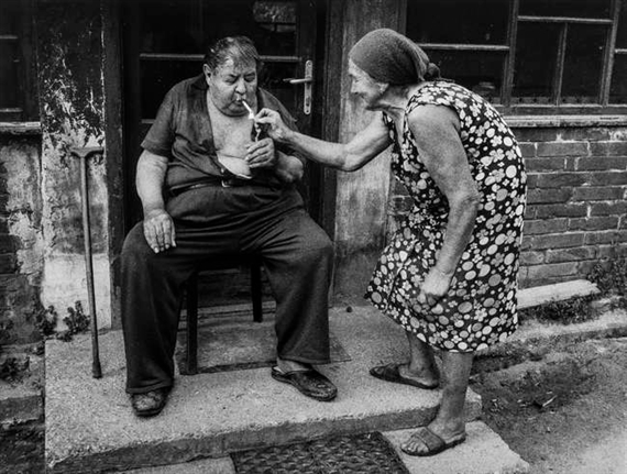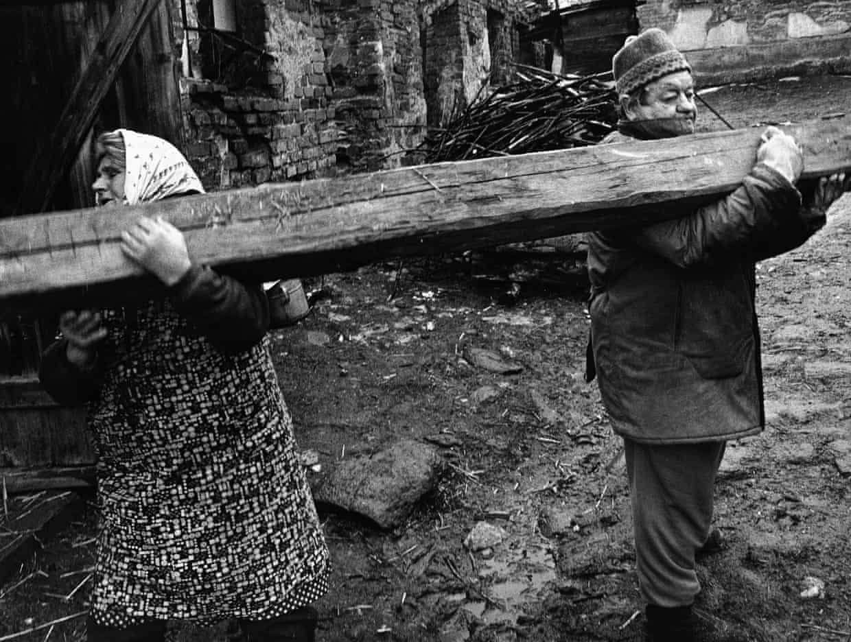 1993 yılında Çekoslovakya’nın Olomouc bölgesindeki yaşamla ilgili bir proje üzerinde çalışıyordum. Bir gün, Dlouhá Loučka – Krivá köyüne geldim ve bir avluya gittim. Orada iki yaşlı insan gördüm, bir karı koca, kış için odun kesiyorlardı. Sessizce çalışıyorlardı, yaptıkları işe dikkatlerini vermişlerdi. Yıkık bir ahırdan bir kiriş getirmelerini izledim ama testereye nasıl taşımayı planladıklarını konuşmadılar. Kadın bir yöne, adam diğer yöne bakıyordu. Farkına vardıklarında, kadın sonunda döndü ve kocasını takip etti.