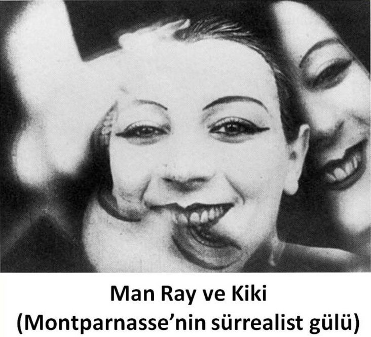 Kiki, (Alice Ernestine Prin 1901 – 1953), Montparnasse kraliçesi, Fransız mannequin, şarkıcı, oyuncu, ressam. Man Ray’in birçok filminde yer aldı. Man Ray sonrasında fotoğrafçı Lee Miller’a gönül düşürünce ayrıldılar.
