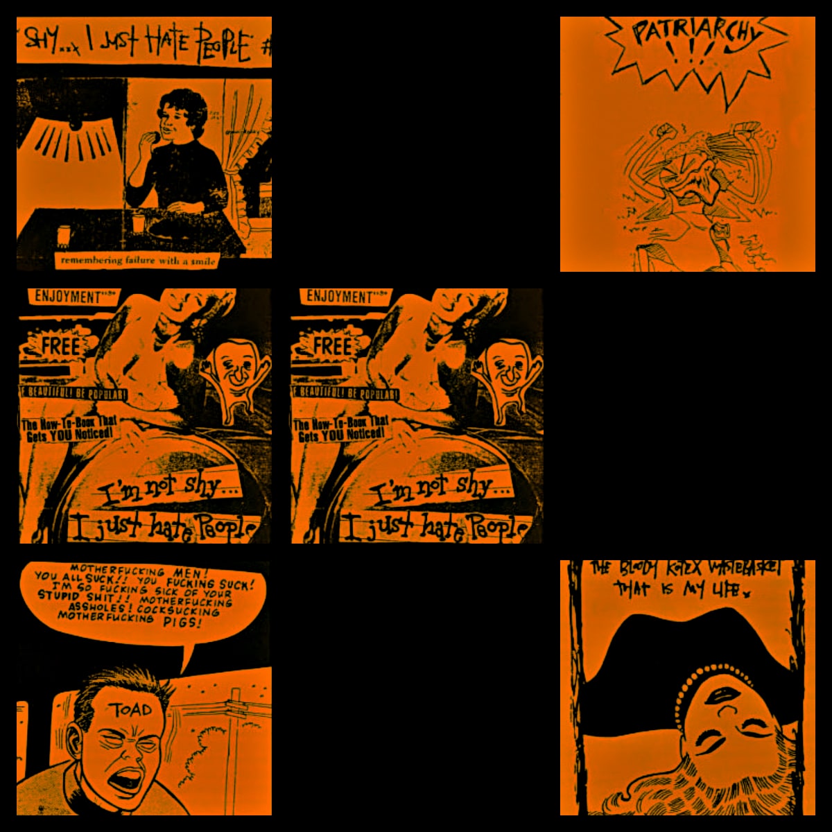 T: Bence sokağımın sakinleri falan, herkes fanzin yapsa harika olurdu. Herkesin hakkında konuşmak istediği çok yönlü yaşamları var ama televizyon dışında bir medyumları yok. Televizyon her şeyi sikip atar. Her şey bir medya nesnesi haline gelir; pornografi gibi. Her şey önemsizleşir ve çarpıtılır. Bilgi edinmek istiyorsanız, insanları tanımanız, mektup yazmanız, okumanız gerekir ve tüm bunların bir önemi vardır. Televizyonda bilgi denen şey emek etmeden, eleştiri olmadan ve düşünmeden kabul görecek bir şey gibi lanse ediliyor.