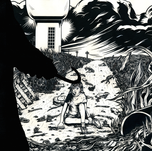 “No Light Pollution” comes on gradually, a spooky tunnel of sound. providing glimpses of what’s to come. Songs like “Weird Meetings at teh Water Castle” and “You’ll Become What You Fear the Most” are shimmering and richly textured. We go into the light for a brief moment in the vocal tracks “Where Your Body Split”, “Where Your Body Split” and “Eli’s Song”, though there is a harrowing ambivalence in “Rusty Knives Valley”. The cover and insert art is recalled when hearing the spiraling, droney “Season of the Slasher” conjuring up images easily of a scary, mystical world.