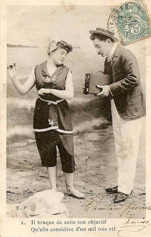 Yirminci yüzyılın ilk yıllarında fantezi karpostal furyasının örnekleri arasında yer alan bu altı serilik kartpostallar, bir fotoğrafçı ile sokakta gördüğü güzel bayan arasında geçen diyaloğun, stüdyo ortamında canlandırılmasıyla ortaya çıkmış güzel bir skeç örneğidir. Bu kartpostal serilerinin fantezi kartpostallar olarak anılmasındaki etkenlerden biri de diyaloğun geçtiği mekanların kurgulanmasıdır. Bu kartpostallarda mekan olarak deniz kenarı düşünülmüş ve stüdyonun arkasına fon olarak deniz görseli yerleştirilmiş. İşlediği konuyu genişletmeden, en canlı çizgiler içinde yer veren bu karpostallar, dönemin mizah anlayışı hakkında da fikir vermektedir. Reddilen fotoğrafçıyı oynayan kişinin elinde gördüğümüz fotoğraf makinesi, şimdi cep telefonlarına indirgenmiş makinelerin atasını teşkil etmekte. Kıyafetler ise eski dönem filmlerinden aşına olduğumuz modeller. Bir kişi tarafından 1904 yılında belki sevgilisine belki de bir arkadaşına postalanmış bu kartpostallarda yatan ve diğer o dönemlere ait kartpostallardan edindiğimiz bilgi şudur: Eskiler balık etli bayanları severmiş, şimdiki gibi sıfır bedenleri değil.