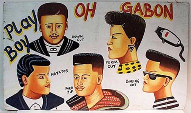 Togo, Benin, Burkina Faso, Gana gibi Batı/Güneybatı Afrika ülkelerinin berber dükkan tabelaları diğer pek çok ülkede olduğundan daha önemli bir konumda. Afrikalılar için saçın kötülüklerden koruma gibi bir misyonu olması ve saç kesiminin şekli medeni durum, sosyal statü gibi kişi hakkında önemli bilgiler vermesi, berber dükkanlarının tabelalarına da ayrı bir önem vermesine sebep olmakta. Saç stillerine verilen isimler de bir hayli önemli; Pele, Mr. T, Cocain cut, vb. İsimlerin ardında yatan hikayeleri tahmin etmek pek güç değil.[simpleviewer=81,650,800] ✪