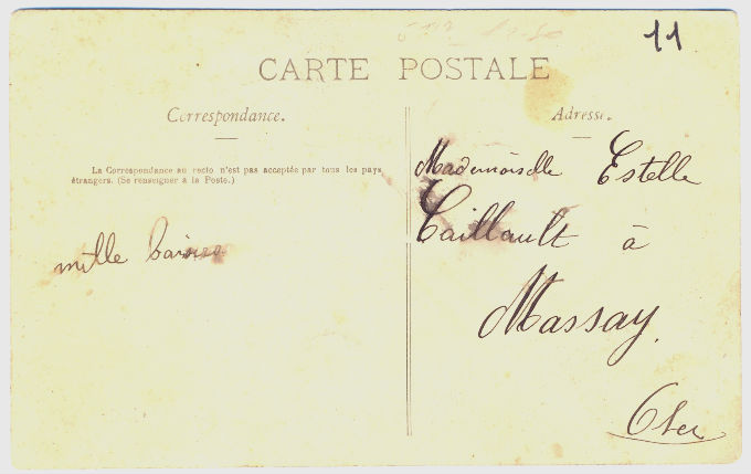 Kartların arkasındaki el yazılarından çözebildiğimiz kadarıyla, 1905 tarihli kartlar Fransa’nın iç kesimlerinde yer alan -o zaman- küçük bir köy olan Massay’a, Matmazel Estelle Gaillault adına gönderilmiş. Tahminlerimize göre o yıllarda kapütülasyonlar gereği Osmanlı’dan bağımsız çalışan Fransız postanesinden atılmış olabilir. Akıl, boşlukları hayalgücüyle ve yaşananların çoğunlukla olumlu yansımasıyla doldurmaya çalışıyor. Gönderenin, aşkını anlatmak için kullandığı kartpostal dizisinin başlangıcı ne yazık ki elde yok.
