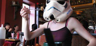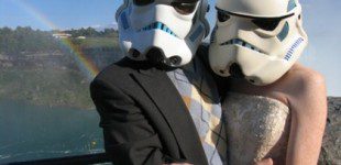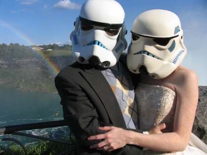 Evlilik, onu eğlence haline getirmeyi,paylaşmayı başaran çiftler ile güzel bir kurum. Tersi durumda üçüncü sayfaya haber oluyorsunuz. 2006 yılının Eylül ayında evlenen iki genç insan, ortak tutkuları Star Wars’u yaşamlarının merkezine koyunca, büyük bir internet fenomeni haline geldiler. Balayında kendilerine birer adet Stoormtrooper kaskı alan çift, o tarihten sonra çeşitli mekanlarda fotoğraflarını çekmeye başladılar.