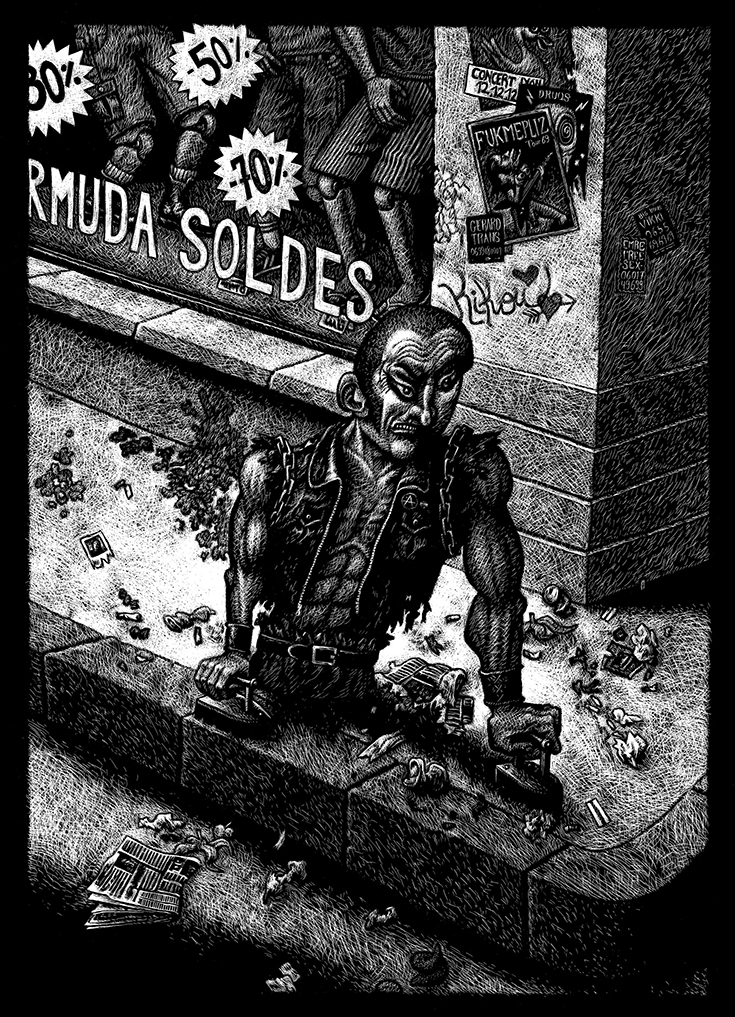 Her şeyden vazgeçip okulu bırakmayı düşündüğüm, yaşadığım yeri terkedip seyahate çıkmak istediğim bir dönemdi. Münzevi bir halde Afrika turuna çıkmak yada Atlantik’i kanoyla geçmek istediğim dönemler. Ancak Afrika çok sıcak ve sıcağa katlanamıyorum. Sonrasında şunun farkına vardım: okuduğumuz bu çizgi romanlar regular insanlar tarafından çizilmiş, yani zihinsel kapasitesi ekstra gelişmiş uzaylılar tarafından çizilip de gezegene gama ışınları aracılığıyla gönderilmiş falan değiller. Şunu da fark ettim ki özel bir okula gidip çizim yapmayı öğrenebilirdim. İyi bir çizer olabilmek için belki yeteneğim yoktu; ama durmadan çizmeyi sürdürdüm, kötü bile olsa, asla çizmeyi bırakmadım. Sanat okulunda okuduğum halde – benimki Emile Cohl’du – hep bir parantezin ve eğlencenin içinde hissettim kendimi, ta ki “düzgün bir meslek” sahibi olmam gerektiğini farkedene kadar. Hala kendime iyi bir iş arıyorum… Mono-manyak gergin bir adamım, hayatı ciddiye alacak biri gibi görünmüyorum.