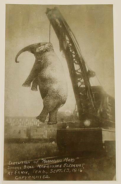 Mary, kaçmasın diye bir ayağından vince bağlanmış, boynunda zincir bekler akıbetini. İlk denemede zincir kopar, yere düştüğünde kalçası kırılmıştır filin, kemiklerin sesi irkiltir seyredenleri, çocuklar korkudan çığlıklar atarlar. İkinci denemede daha büyük bir zincir dolanır boynuna, bu sefer başarılı olunmuştur; Mary ruhunu dakikalar içinde teslim eder. Yarım saat boyunca “sallandırılan” Mary’nin devasa bedeni tren istasyonunun bahçesine gömülür.