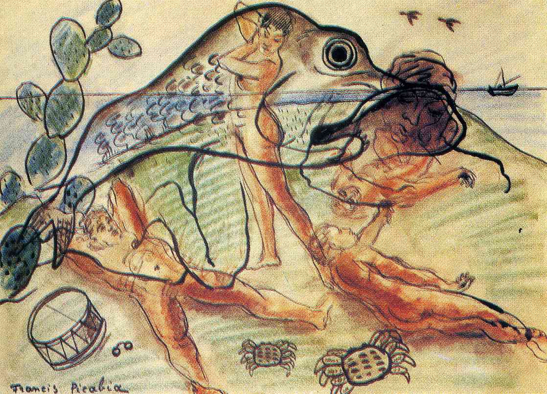 Yerde dört vücut vardır. Sadece kadın ayaktadır. Kadın Havva’dır, sağında yatan adam Adem’dir. Adem’in kolları başının arkasında umarsız bir tablo çizer. Balık Havva’nın içinden görünür, evrimin getirdiği yükü Havva taşır.