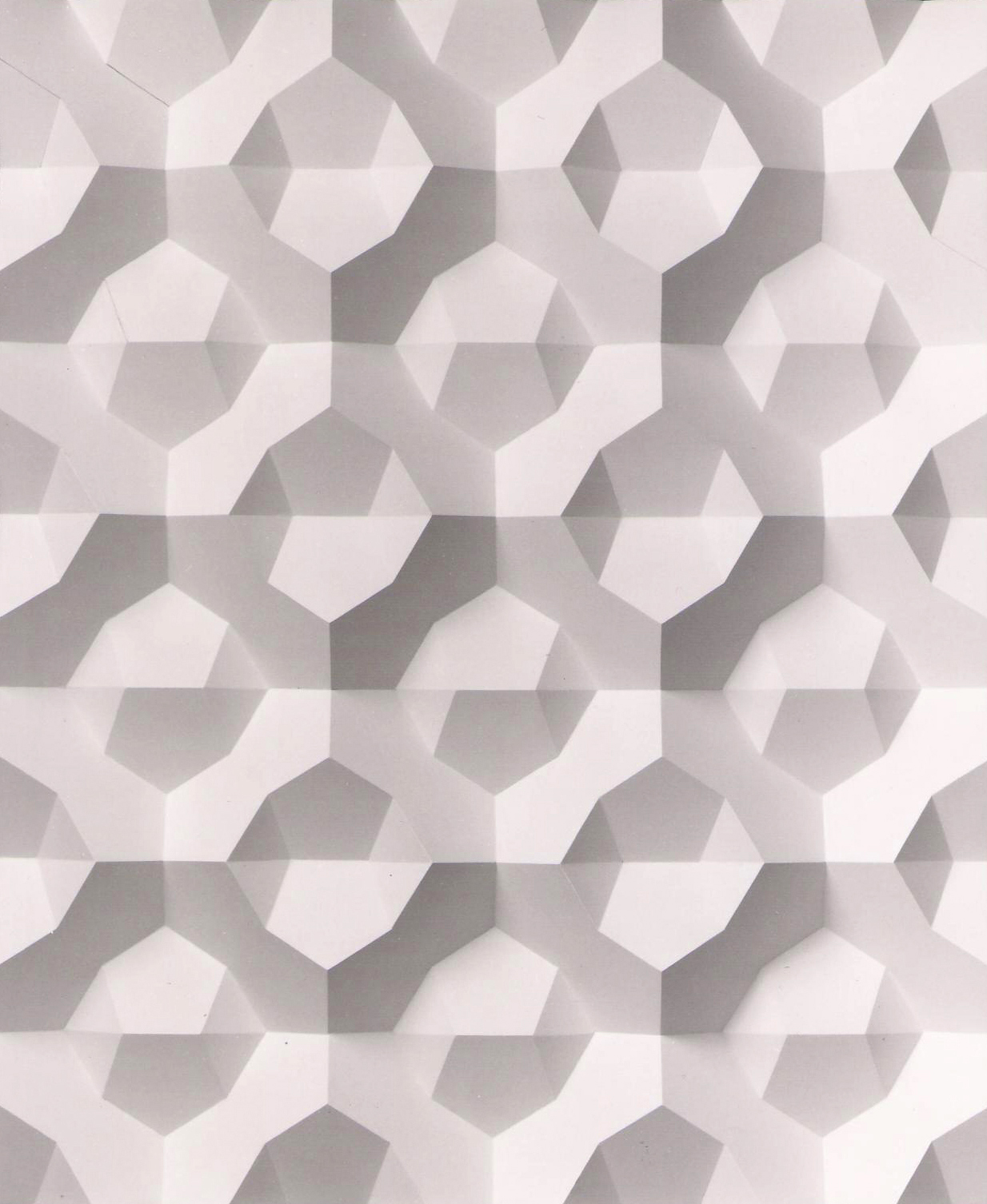 “Beşgencilik, bütün dallarıyla çok çeşitli yoldan irdelenen ve açıklanan beşgen ve ona ilişkin geometri odağında yeni bir görsel dil olarak sunuluyor. Antik çağlardan bu yana bildiğimiz, bir kısmı anlaşılabilir ama çoğu anlaşılmaz nedenle ihmal edilmiş olan beşgen konusunda yaptığım araştırmalar ve sanatsal pratik yalnız inanılmaz ölçüde bir esneklik içeren biçimin değil, aynı zamanda biçimci bilim kuramında olanaksız olmanın yanı sıra yasak olarak da açıklanan yeni bir yapısal kompozisyon olanağının anahtarını da gün ışığına çıkarttı. Bilimin, sonsuz ve düzenli birleşenlerin ve bunların mekânsal karşılıklarının olanaksızlığını açıklaması nedeniyle, düzenli beşgen simetrilere çevrilebilen simetrilerin olanaksızlığının da sanat ve tasarım dünyası tarafından körlükle kabul edildiği anlaşılıyor, araştırmalarıma başladığım 1968 yılında, beşgenli – ya da onun mekansal karşılığı olan oniki yüzlü – sonsuz yapıların varlığı henüz kanıtlanmamıştı. Sezgisel olarak kendiliğinden bir kompozisyonla Beşgenin Yaradılışı başlığı altında işe başladım ve Kandinsky’nin noktadan çizgiye, çizgiden biçime kuramının tersine, ben bu tek biçimle (beşgen) ve onun mekânsal bileşeni olan oniki yüzlü şekillerle (dodecahedron) doğrudan çokyüzlüler (polyhedron) üretmeye başladım.”[/box]