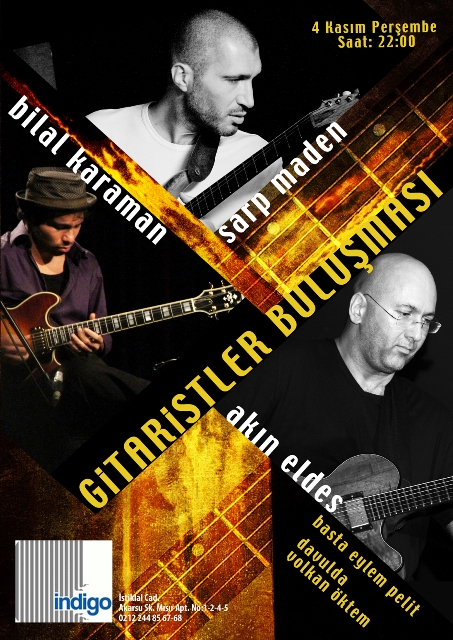 Türkiye’nin kendi tarzlarında virtiöz olan üç önemli gitarcısını 4 Kasım gecesi İndigo’da aynı sahnede buluşturan bu projeye Davulda Volkan Öktem ve Basta Eylem Pelit’de eşlik ediyor.