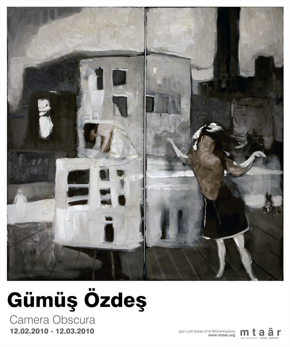 “1982 İstanbul doğumlu sanatçı Gümüş Özdeş, Mtaär’da açılan ilk kişisel sergisinde dağılan, çarpan, yapışan ve parçalanan ışığın kendi kendine kurguladığı anların ve alanların akromatik bir yorumunu sunuyor. Lak ile astarlanmış tuvallerin üzerine siyah ve beyazın çeşitli tonlarında uyguladığı tablolardan oluşan sergi, 12 Mart’a kadar Mtaär’da izlenebilir.”