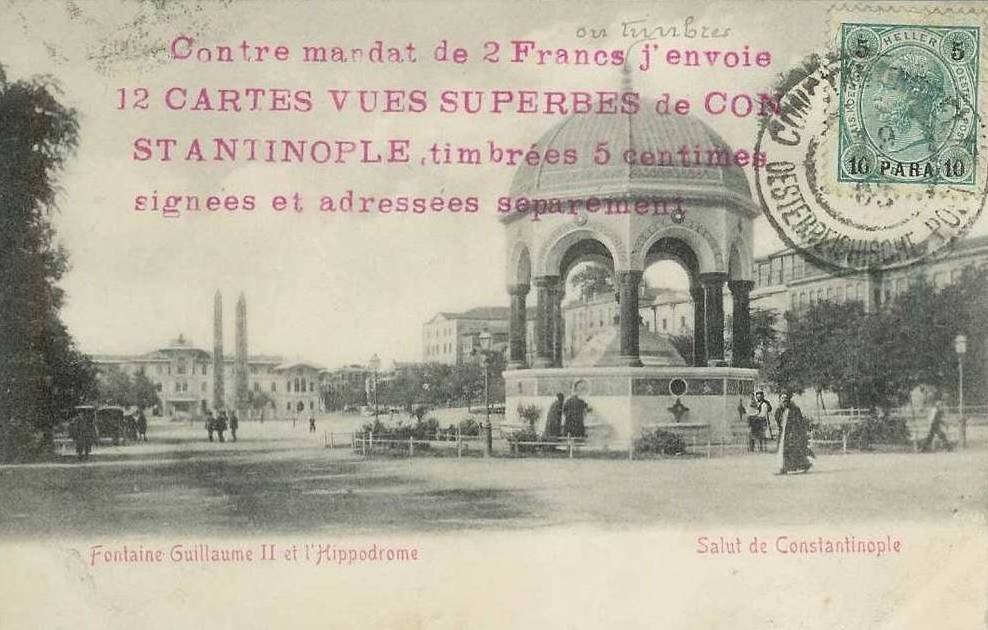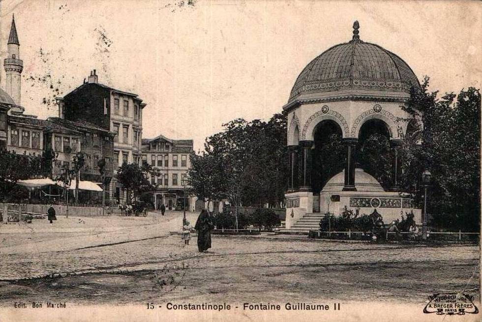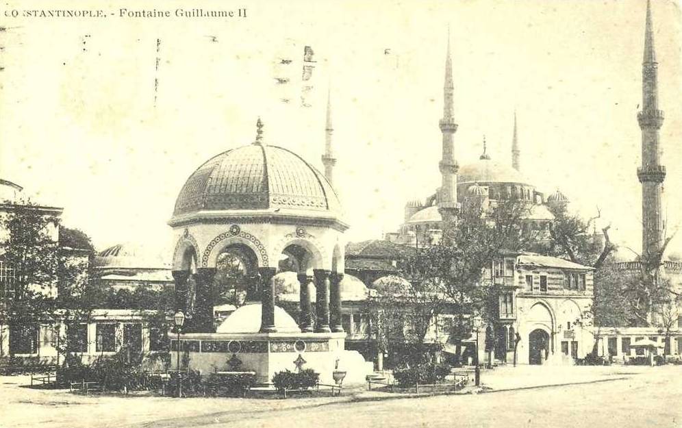 Sultanahmet meydanına serinlik getiren, Divan yolundan geçen yolcunun susuzluğuna derman olan bir çeşme vardır meydanda; Alman çeşmesi. Osmanlı’nın sıkı dostu olmuş Alman İmparatoru II.Wilhelm tarafından yaptırılan ve 1901 yılında hizmete açılan çeşme, Neo-Bizanten üslubuyla diğer anıtların yanında sırıtmadan varlığını korumuştur. Sanayisi gelişmemiş Devlet-i Aliyye’yi büyük bir pazar olarak gören ve savaş endüstrisinin kazandıracağı paraları kendi yönüne çekmek için böyle bir hediye yaptıran II.Wilhelm, istediğini de bir ölçüde başarmıştı.