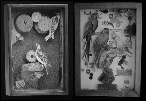 “Cornell onu çocuk gibi sevindiren objeler -deniz kabukları, kelebekler, pullar, oyuncaklar, bilyeler- ile, bir yetişkin olarak takıntılı olduğu nesneleri -balerinler, boş kafesler, gökyüzü haritaları, Chaplin, Mallarmé, tahta çekmeceler, çalılar- bir araya getirmeyi başardı.”