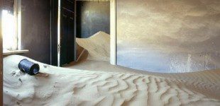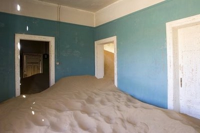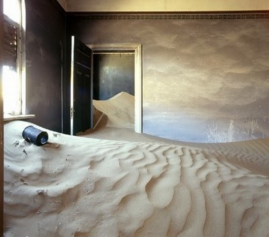 Kolmanskop, Namibya’nın güneyinde bir şehir. 1900’lu yıllarında başında, elmas bulmak ve kısa yoldan zengin olmak amacıyla insanların bölgeye akın etmesi sonucunda çölün ortasında büyük kumarhaneleri, hastanesi, pahalı evleri, yüzme havuzlarıyla bir nevi insan yapımı cennet olmuş.