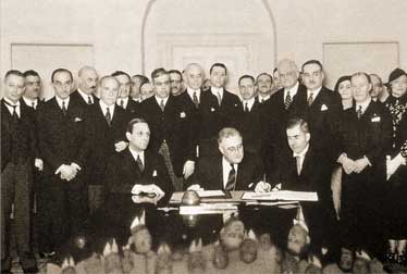 Bayrak ayrıca, 15 Nisan 1935’de ABD ve 20 Latin Amerika ülkesi tarafından imzalanmış bir antlaşma ile “Küresel Barış Bayrağı” olarak tanınmış. Antlaşmaya göre; savaşta ve barışta, bu ülkeler birbirlerinin, barış amblemiyle belirlenmiş tarihi yapılarını, müzelerini, eğitim, bilim, sanat ve kültür kurumlarını korumakla yükümlüdürler. Sovyetler Birliği de antlaşmayı 1959’da imzalar.