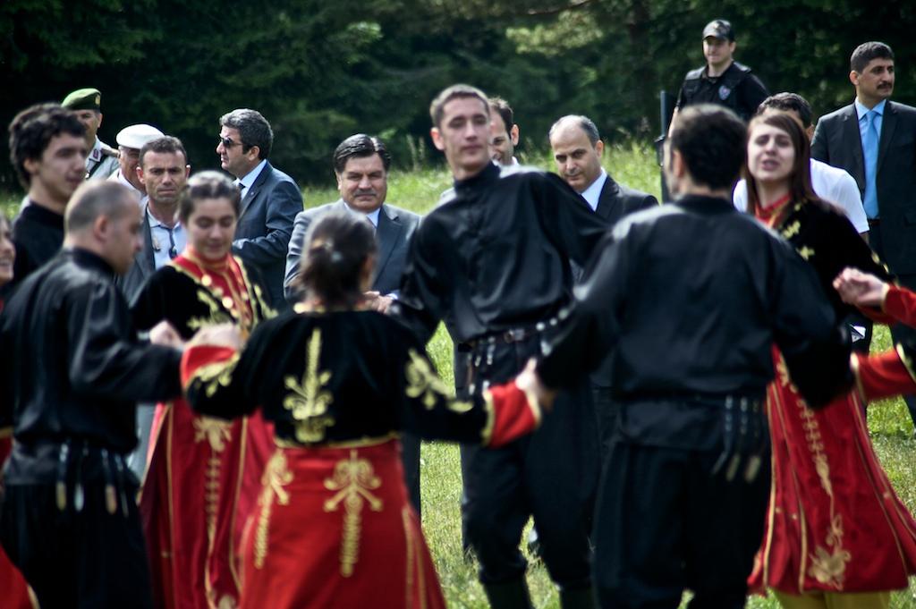Bu sefer ziyaret bahşeden devlet büyüğü Haşim Kılıç, Anayasa Mahkemesi Başkanı. Kafkasörün tepesinde, onlarca kişilik koruma ekibi ile beraber geziyor, yiyor, bakınıyor. Tabii, hemen bir sahne kuruluyor. Davul geliyor, İskoçya dışında Artvin’e de yerel olan tulum çalgısı, akordiyon ve bir adet solist geliyor. Hemen başlıyorlar Artvin’in en bilinen ve en klişe oyununa: Atabarı. Misafirimiz devlet baba olunca sözler değiştiriliyor. “Atamızdan yadigar, bizde ata barı var” yerine “Atatürk’ten yadigar, bizde ata barı var” oluyor. “Atatürk” denirken ses yükseliyor, üzerine basılıyor. Sonra bir “deli horon” tepiyor erkekler, sonra adını hatırlamadığım diğer oyunlara geçiliyor. Oynayanların fotoğrafını çekermiş gibi yapıp Sayın Kılıç’a odaklıyorum kocaman telefoto objektifimi. Farketmez diye umuyorum. Yanındaki tek kaşı kaldırmış çok pis bakıyor (sanki) bana. Sonra etrafımdakilerle şakalaşıyorum, herşey normalmiş gibi yapıyorum. Görmedim sanki arkadaki özel kuvvetleri, sivil korumaların bakışlarını ve bellerindeki kabarıklıkları. Görmemiş gibi yapıyorum.