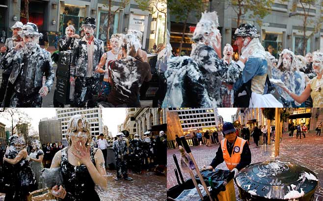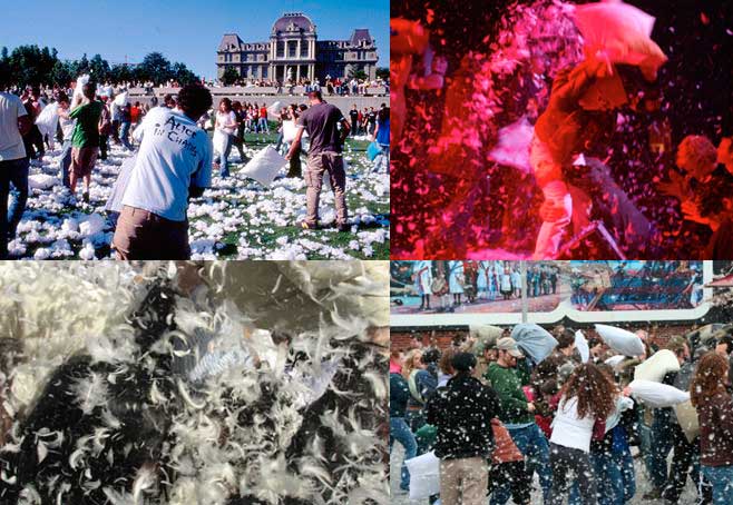 Yastık savaşının yanı sıra şu sıralarda moda olan Flash Mob etkinlikleri arasında traş köpüğü savaşı, pasta fırlatmaca ve zombie yürüyüşü de var.