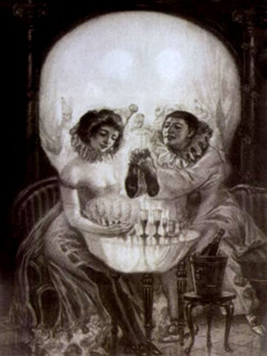 Vanity diye adlandırılan, optik yanılsamanın güzel örnekleri. 100 yıldan uzun bir süredir ilgi görmeye devam ediyor. Gerçekte, bir aynanın önünde oturmuş, takıları ve makyajıyla uğraşan kadını gördüğünüz çizimde, biraz dikkatli bakanlara bir kafatası görünmeye başlıyor. Photoshop ve benzeri programlardan yüz yıl önce, insan eliyle, gerçekçilik ve gerçeküstü arasında kaybolup gidebiliyor dünya. Bunu ilk yapan [Charles Gilbert].