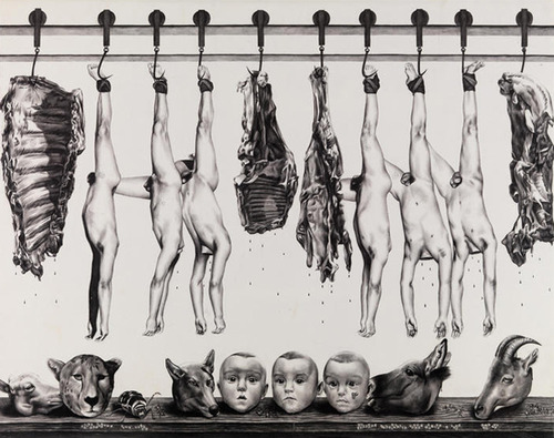 Vonnegut yazını, bir izleme yöntemi olarak düşünülürse pek çok artistin (Keith P. Rein dahil) bu yöntemle izlenebileceği kabul edilebilir. Ancak başka bir artist seçilseydi, bu yazıda göstermek istenilen[1. Okuyucu, göstermek istenileni görmek istemiyor ‘olabilir’.] mezbaha kavramı, beklendiği ölçüde görünmeyebilirdi. İşte bu yüzden ‘Slaughterhouse’ serisinin sanatçısı Rein’i, ‘Mezbaha No:5’in yazarı olan Vonnegut’la izlemenin anlamlı olacağı varsayıldı.