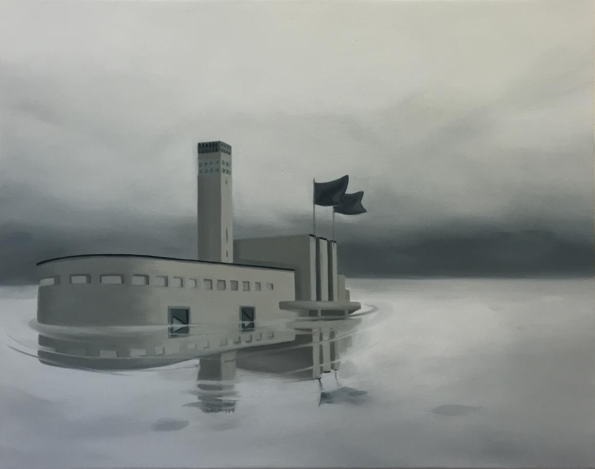 Deforme edilmiş, orijinal bağlamlarından soyutlanmış mekan görüntülerine Yeşim Akdeniz’in son dönem pratiğinde sıkça rastlanır. Sanatçının gerçeküstü kompozisyonlarına bu kez, 1930’larda modernizmi Türkiye halkının yaşamına sokmak, onlara ideal bir hayat tarzı benimsetmek amacıyla inşa edilen kamusal binalar giriyor. Bu bağlamda Taksim Belediye Gazinosu, Çubuk Gazinosu, Ankara Sergi Evi, İstanbul’un çeşitli yerlerindeki fabrika binaları, Akdeniz’in resim evreninde çeşitli göndermeler ve hikayelerle çıkıyor izleyicinin karşısına. Ya yıkılan ya da dönüştürülerek farklı amaçlar için kullanılan, bazı yönleriyle Sovyet estetiğini yansıtan bu binalar, bir bakıma toplum mühendisliğinin de sembolleri. Arada kalmış bir modernlik anlayışının sessiz temsilcileri olan bu yapılar, kendilerini inşa eden zihniyetin devamında, eskiyi silerek yeniyi dayatma isteğinin kurbanı oldular.